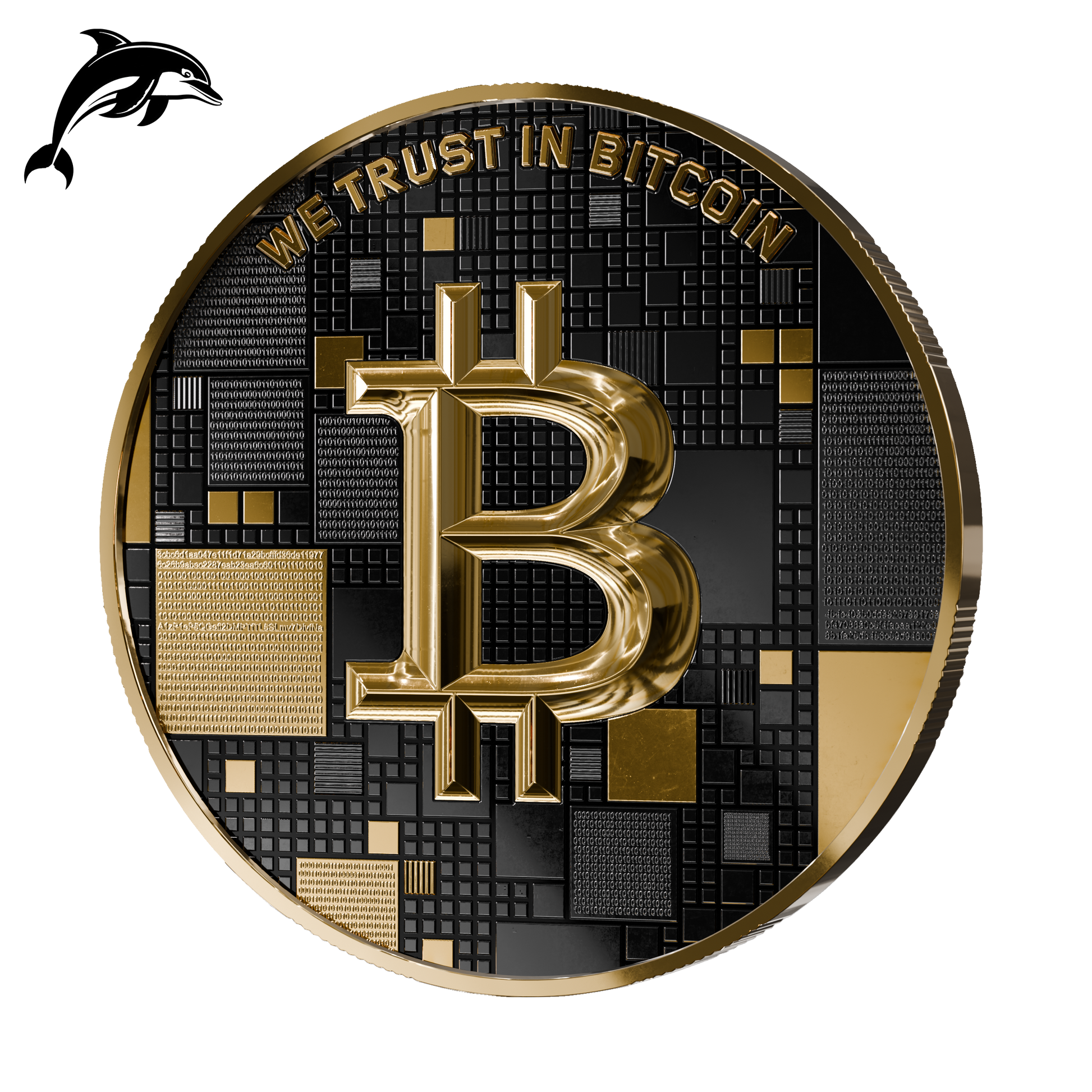 Pièce Bitcoin en Argent – Dolphin – Black Ruthenium + Gold (21g Argent Fin 999)
